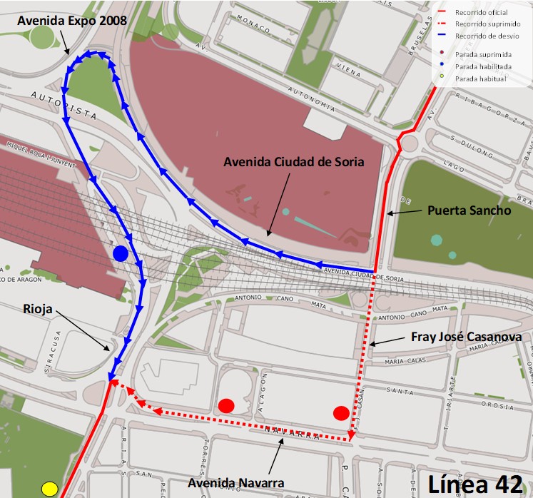Línea 42: Desde Puerta Sancho por Avenida Ciudad de Soria, Avenida Expo 2008 a Rioja.